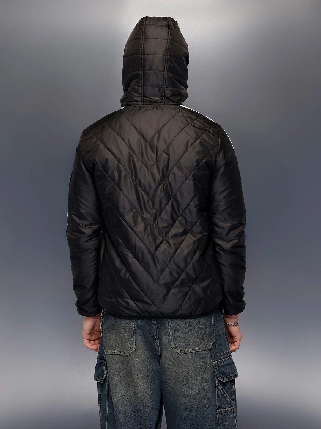This black hooded jacket offers everyday protection with a clean, regular-fit silhouette. Lightweight construction makes it easy to layer. The hood adds functional appeal without bulk. A reliable outerwear essential.