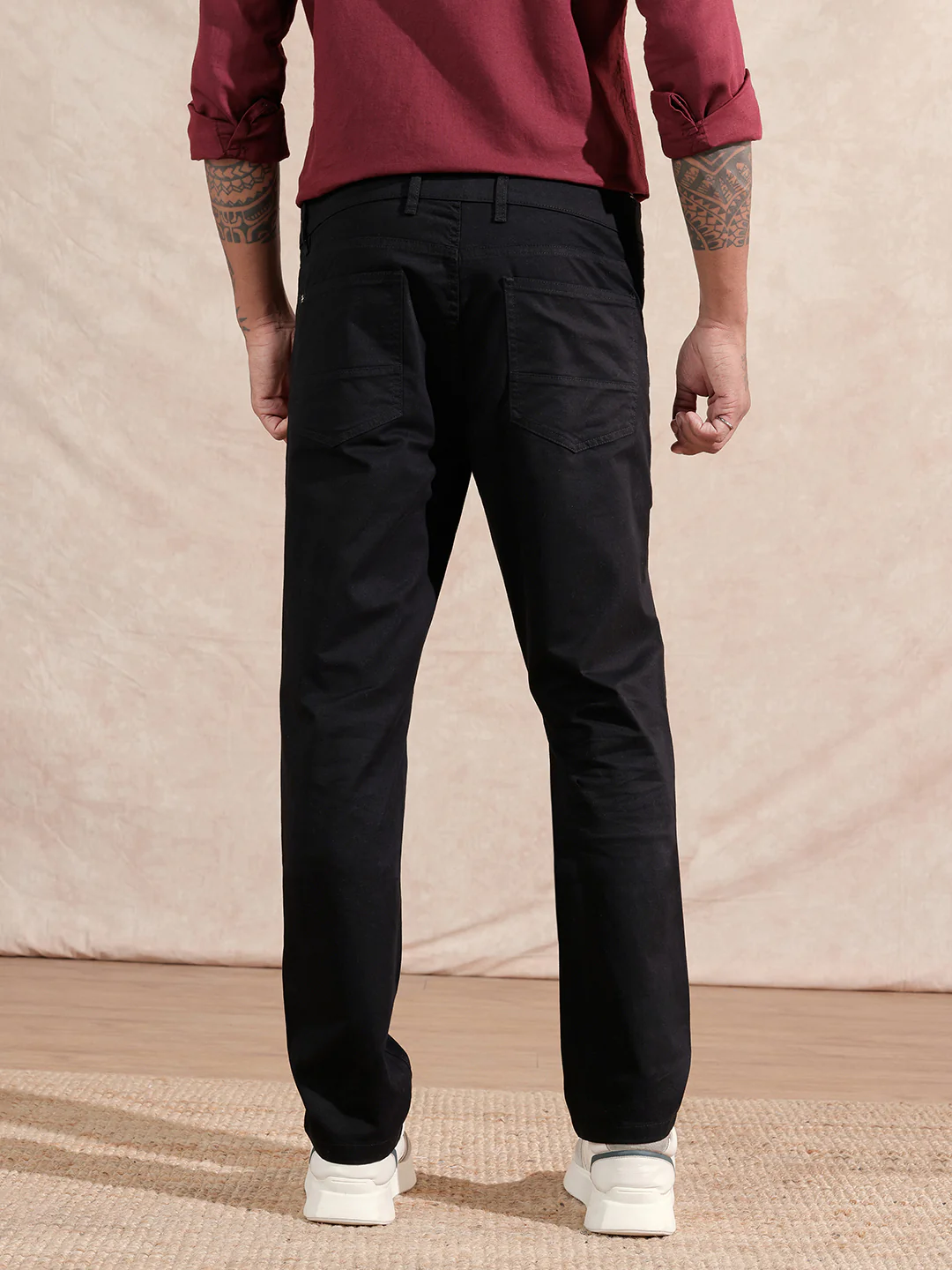 Clean lines, smart fit—these black slim trousers are built for everyday sharpness. The tailored cut flatters without restricting movement. Dress them up for work or down with a tee and sneakers. A go-to bottomwear essential. Reliable and ready for anything.