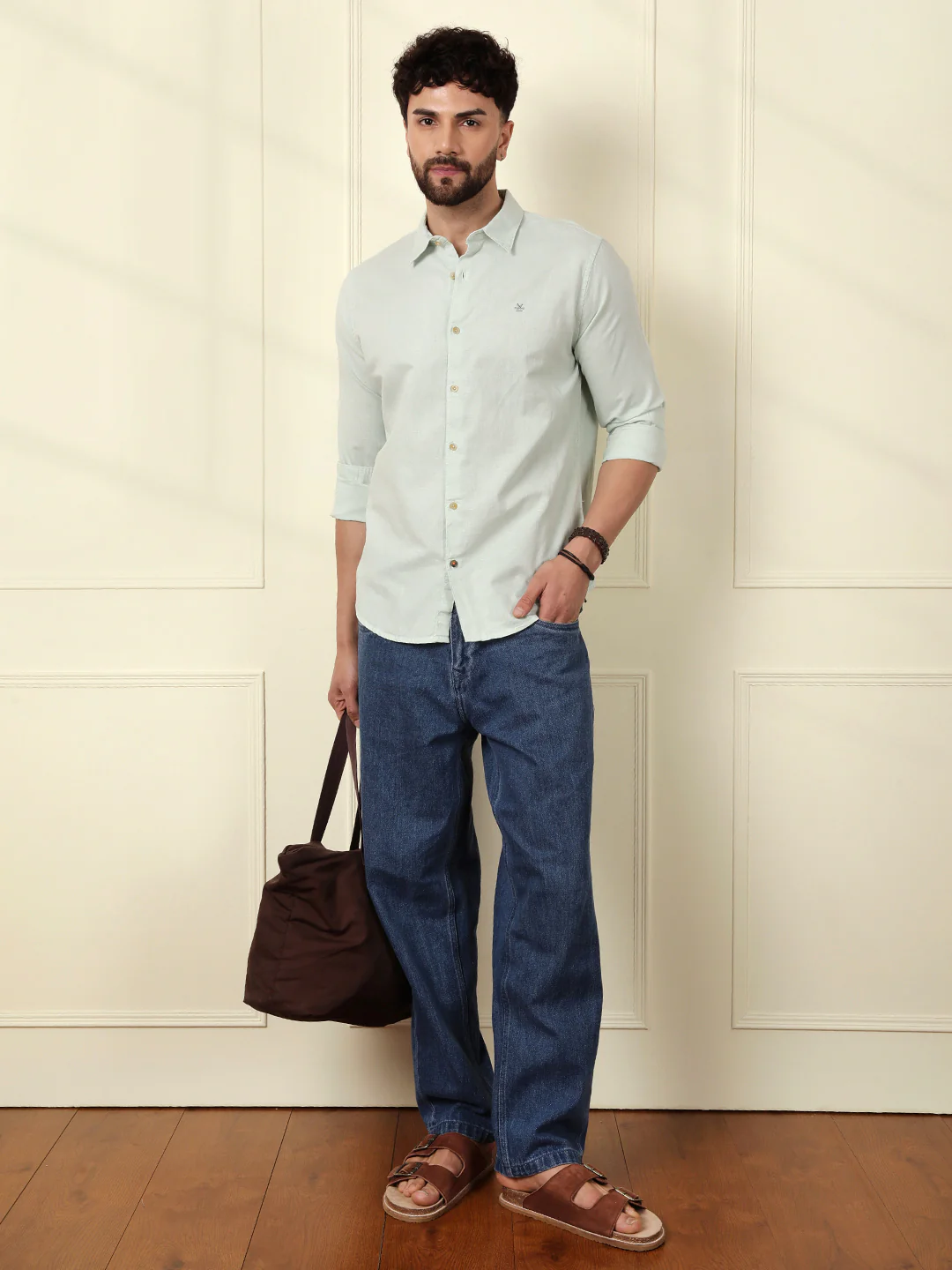 Keep it crisp and contemporary in this Light Green Solid Casual Shirt. Its understated color and relaxed fit deliver an effortlessly cool vibe, ideal for casual outings that need a splash of fresh style.