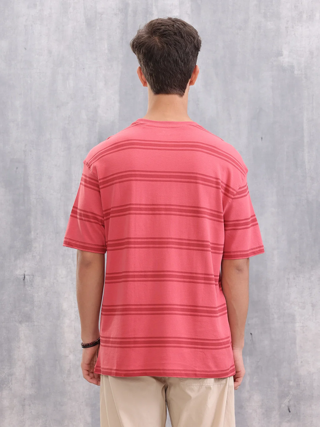Bold and modern, this tee features all-over striper prints for standout character. The red shade adds vibrance, making it a striking everyday option.