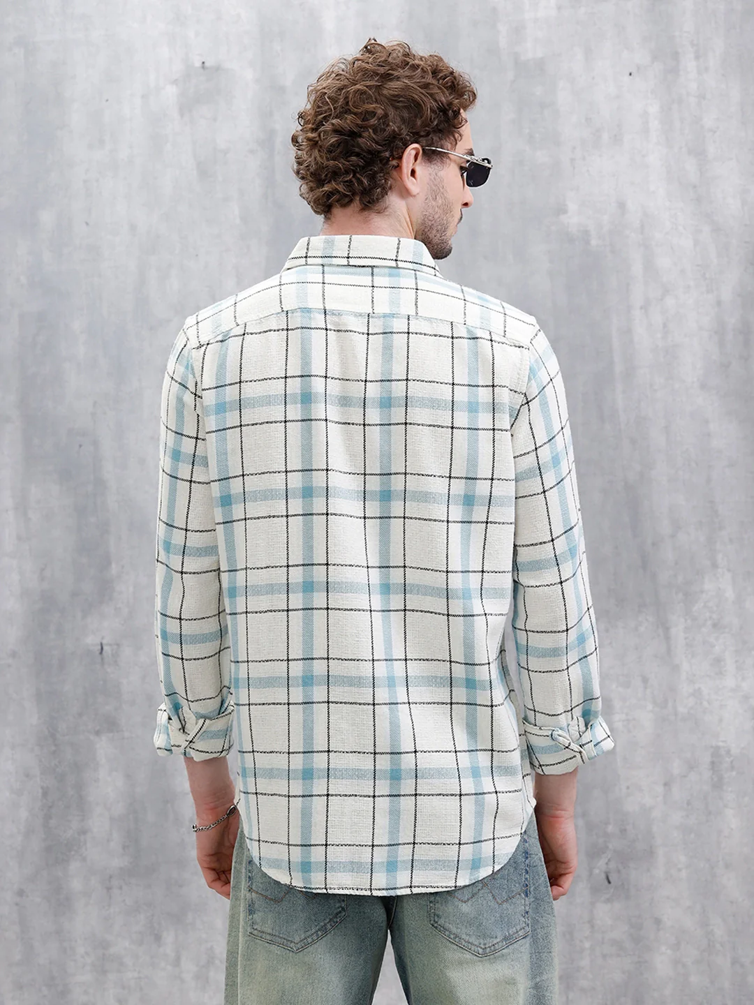 The textured checks in blue are bold without trying too hard. Tailored in a slim fit, it walks the line between easygoing and elevated. Great for layering or solo styling. It’s the shirt your wardrobe didn’t know it needed but absolutely does.