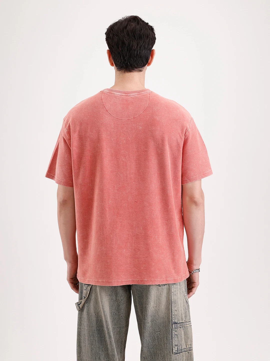 This rust T-shirt features a washed finish for a vintage look. Embroidered patch detailing adds character. Crafted from soft, breathable fabric. A standout piece for relaxed casual styling.