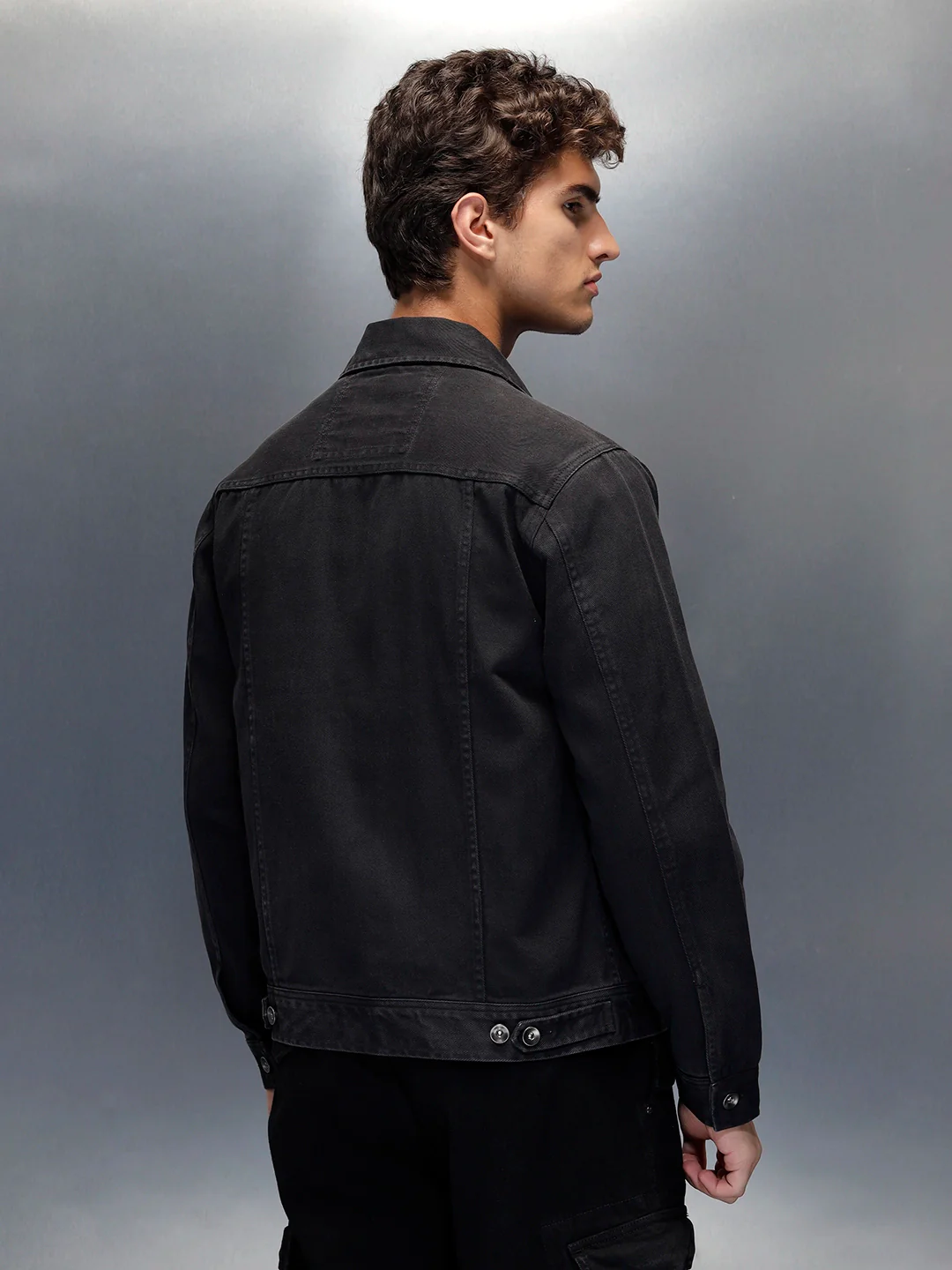 This washed denim jacket in dark stone finish brings rugged charm with everyday wearability. Its classic silhouette is elevated with subtle fading for a lived-in vibe. A layering essential that never goes out of style.